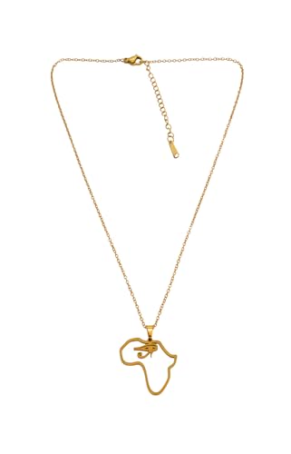 Generic - عقد بقلادة على شكل قارة افريقية من الستانلس ستيل للنساء - ذهبي