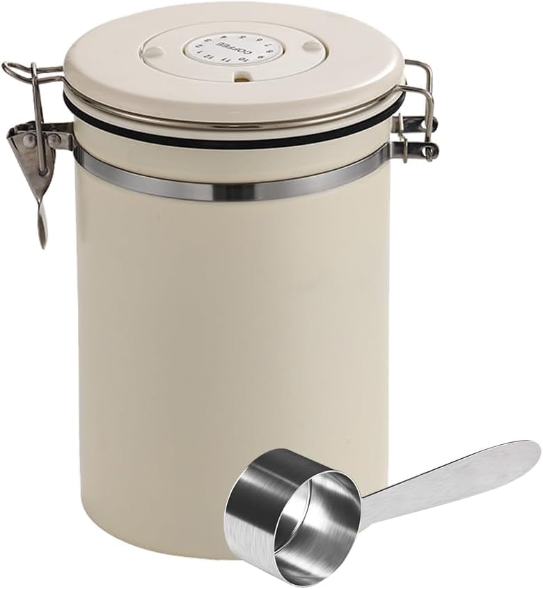 Generic - علبة حفظ حبوب قهوة محكمة الغلق مع ملعقة وعجلة تقويم، وعاء من الفولاذ المقاوم للصدأ لتخزين البن والشاي والمكسرات والتوابل والكاكاو وما إلى ذلك (ابيض, صغير)