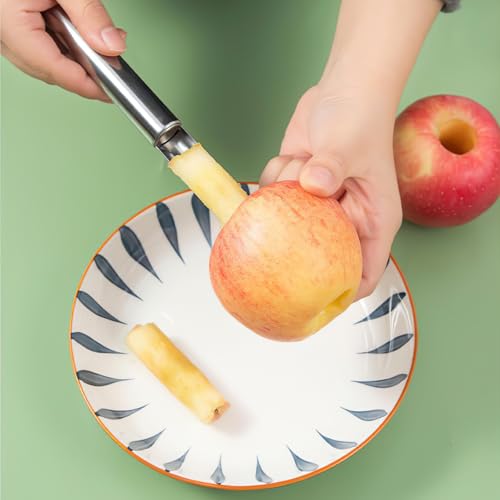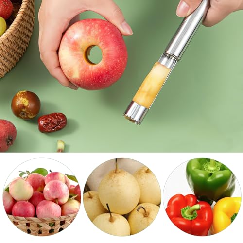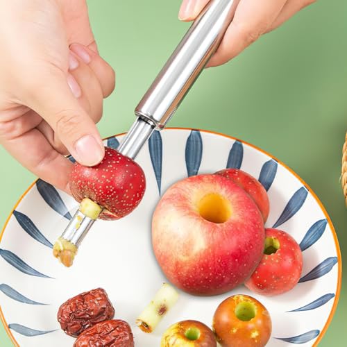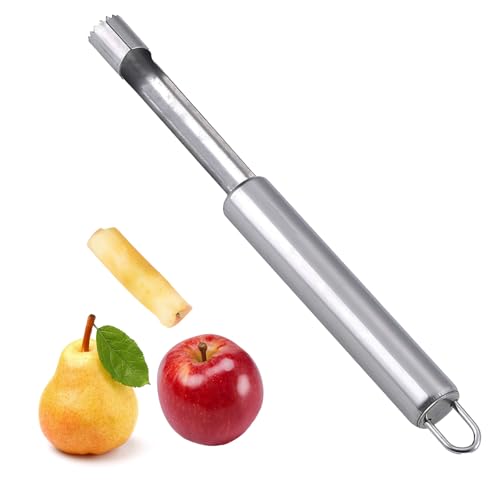 HFMYGS - قطاعة تفاح من الفولاذ المقاوم للصدأ متينة وسهلة التنظيف لإزالة قلب التفاح بطريقة عملية مع فتحة تعليق للتفاح والكمثرى والفاكهة الأخرى
