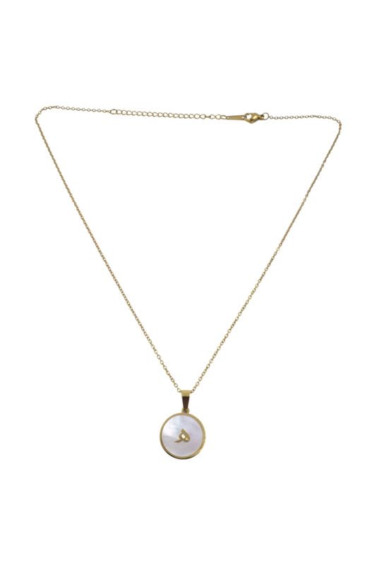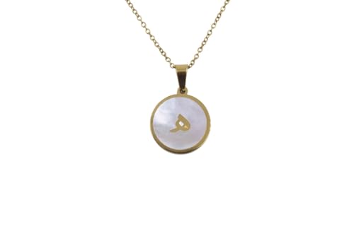 Generic - عقد بدلاية على شكل حرف "ها" من الستانلس ستيل للنساء - ذهبي وابيض