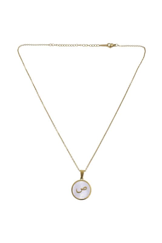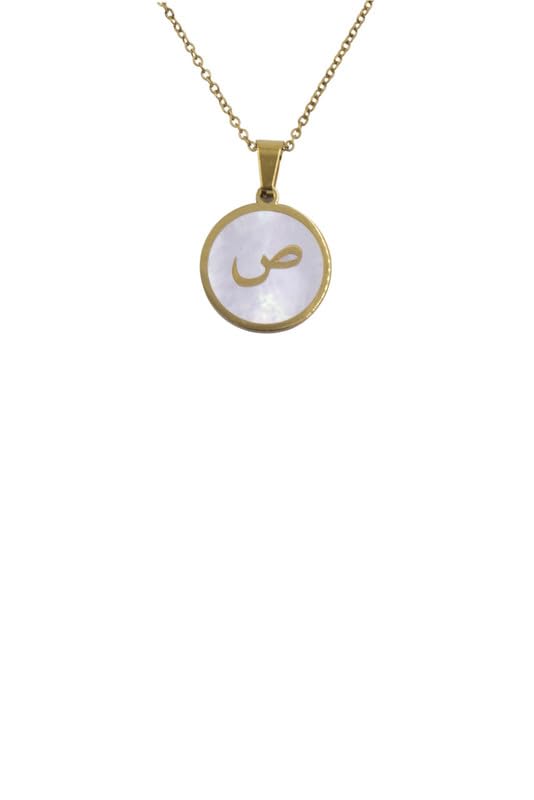 Generic - عقد بدلاية على شكل حرف عربي "ساد" من الستانلس ستيل للنساء - ذهبي وابيض