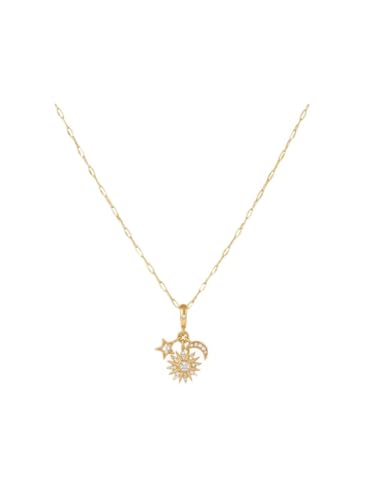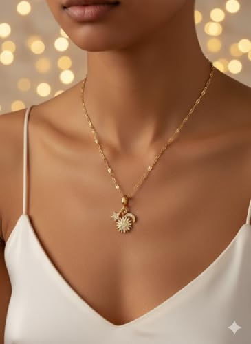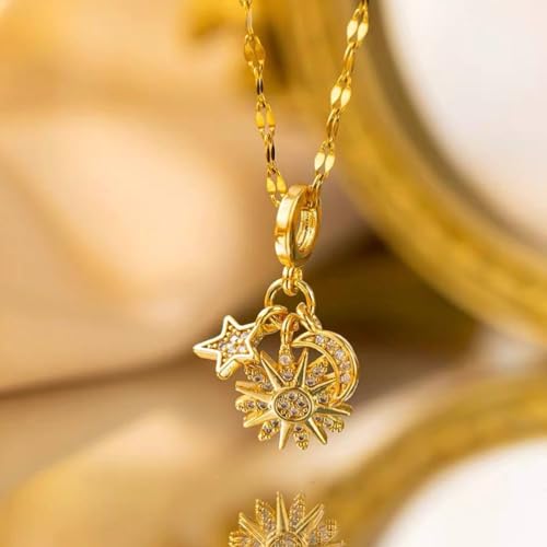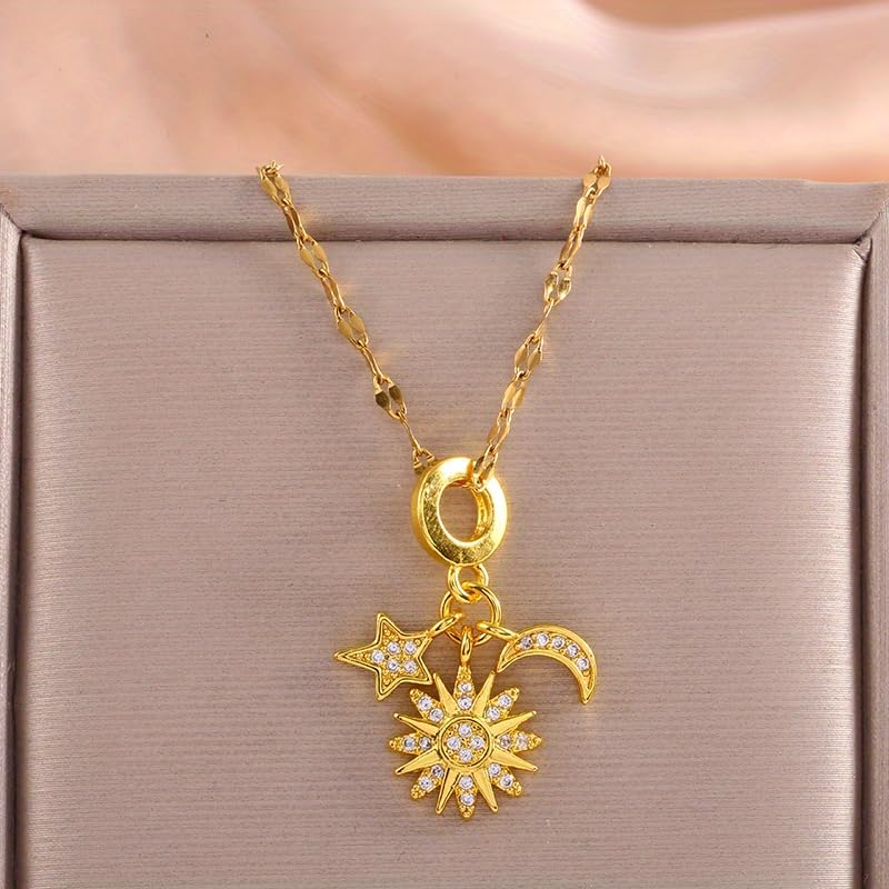 Generic - سلسلة "سحر الفلك" من الاستانلس ستيل - دلاية شمس وقمر ونجوم (جولد بلاتيد) مرصعة بالزركون، مقاومة للصدأ -اكسسوارات بنات-مناسبه للإستخدام اليومي
