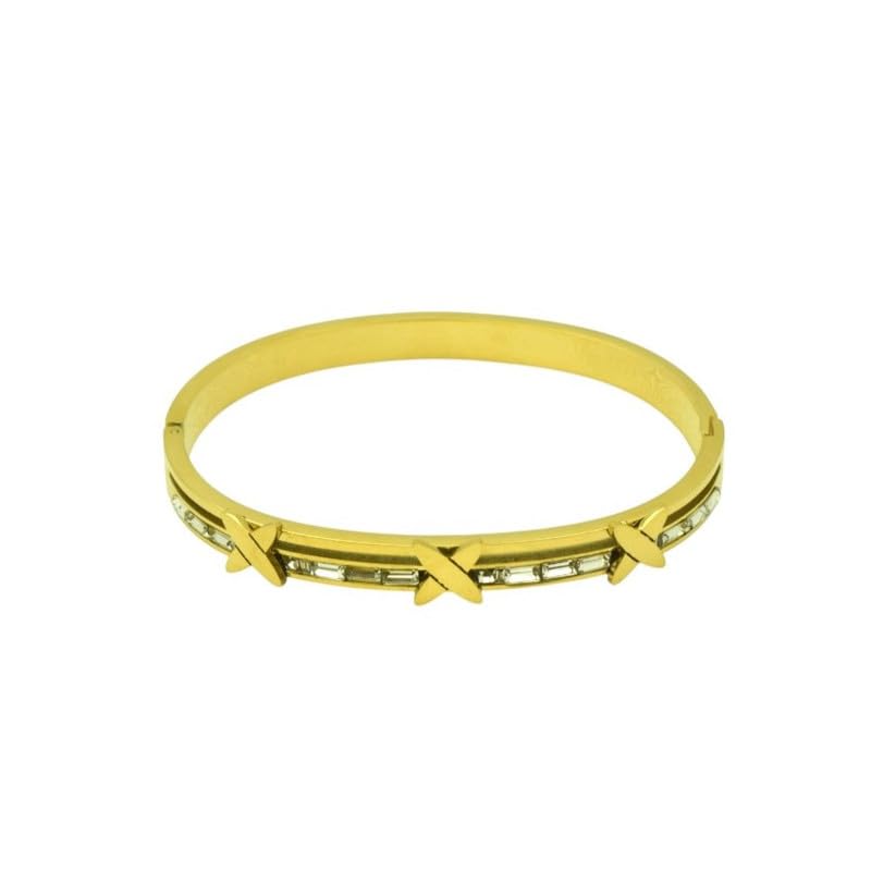 Generic - سوار ستانلس ستيل بتصميم حجر هندسي للنساء، مقاس 18 - ذهبي