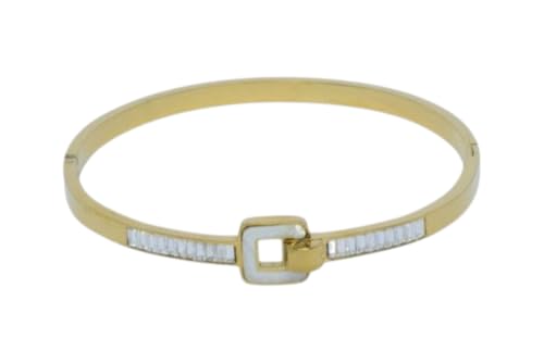 Generic - سوار من الفولاذ المقاوم للصدأ بإبزيم مربع للنساء، ذهبي