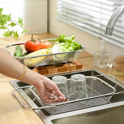 Generic - فلتر حوض وسلة تجفيف من الستانلس ستيل مع شبكة تصريف ناعمة، تصميم عملي قابل للتوسيع لغسل الخضروات والفواكه في المطبخ