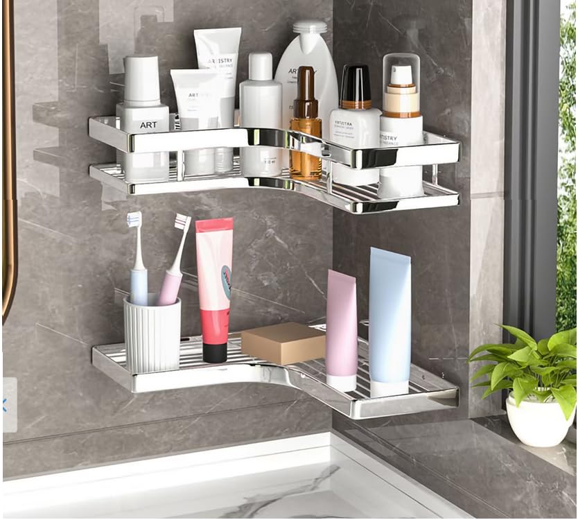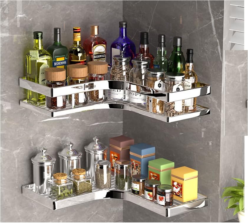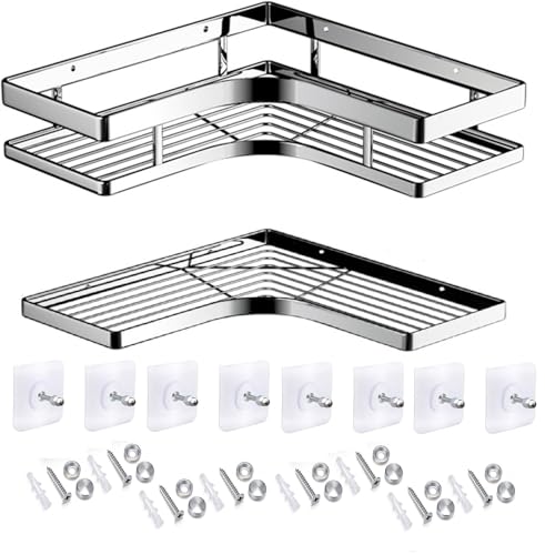 Generic - رف زاوية للحمام من ستانلس ستيل - تخزين متعدد الطوابق مقاوم للصدأ - تصميم عصري سهل التركيب امكنية تركيب البراغي او امكنية تركب اللاصق (رف 2 دور زاوية)
