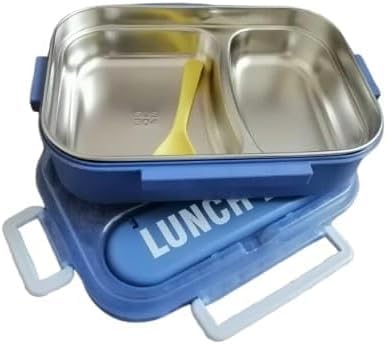 Generic - لانش بوكس بينتو مانع للتسرب من الفولاذ المقاوم للصدأ مع قسمين، أزرق