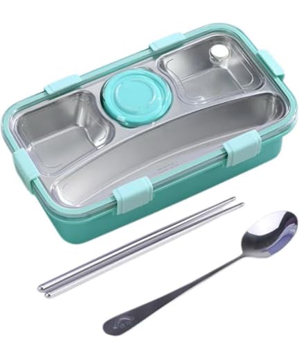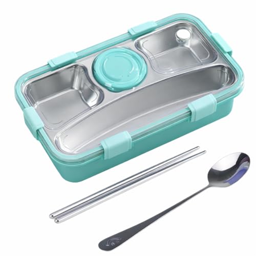 Generic - صندوق غداء بينتو من الستانلس ستيل مع مساحات تخزين، حاوية طعام مانعة للتسرب مع ملعقة وعيدان تناول الطعام (ازرق)