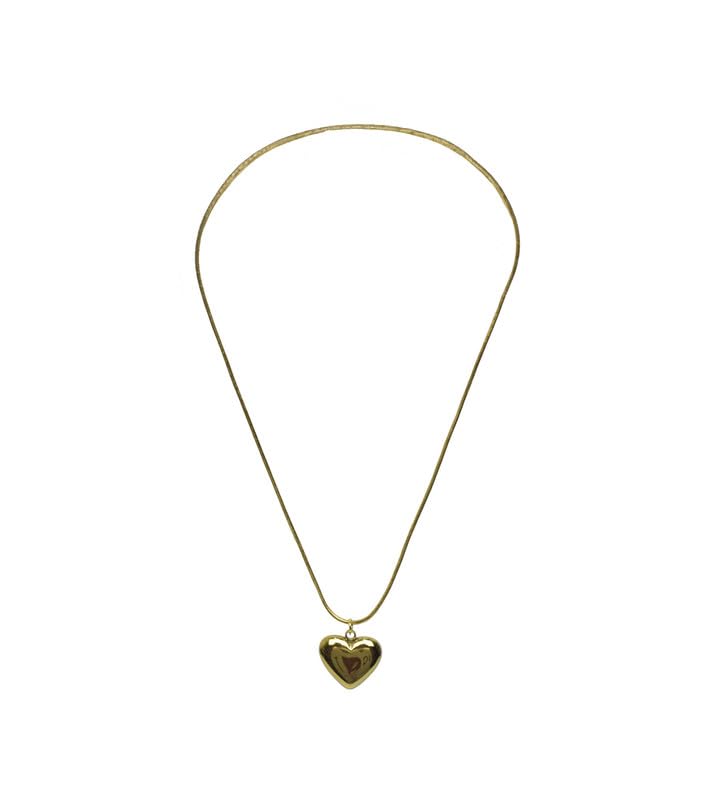 Generic - عقد بقلب كبير من الستانلس ستيل للبنات - لون ذهبي