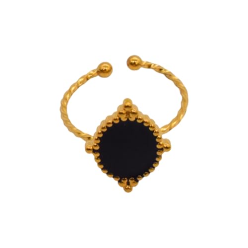 Generic - خاتم للنساء من الستانلس ستيل مزين باللؤلؤ الاسود، مقاس واحد - ذهبي