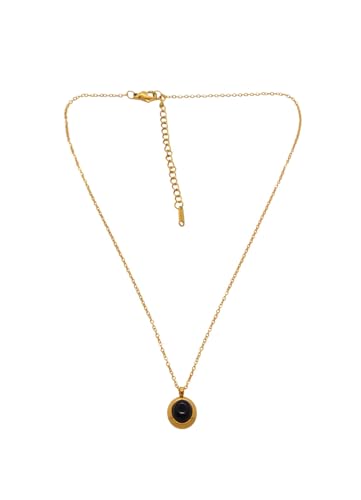 Generic - عقد بقلادة حجر دائري اسود من الستانلس ستيل للنساء - ذهبي