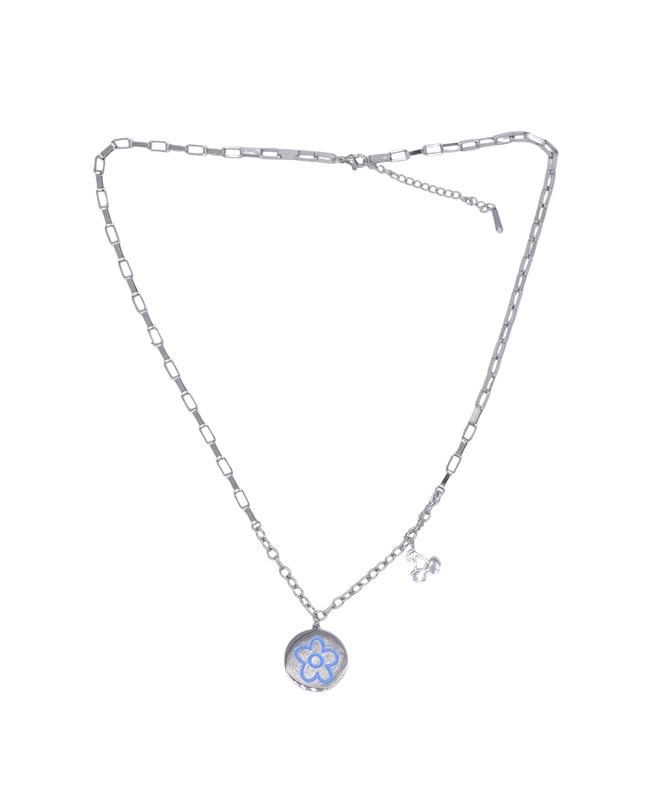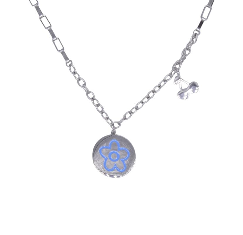 Generic - قلادة بميدالية على شكل زهرة زرقاء من الستانلس ستيل مع تعليقة على شكل كرز للنساء