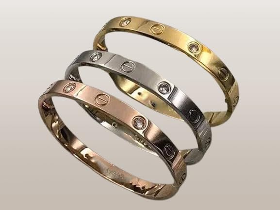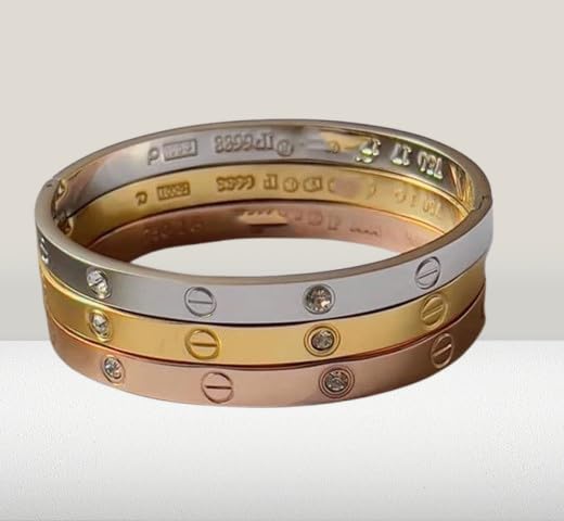 Generic - أساور من الفولاذ المقاوم للصدأ بتصميم البراغي، ثلاث قطع، ذهبي وردي وفضي وذهبي