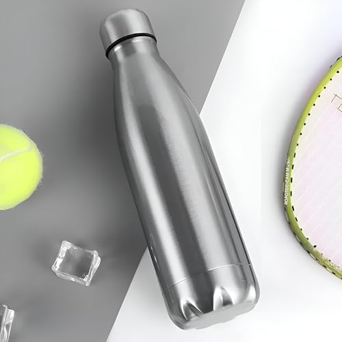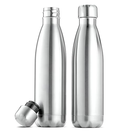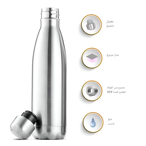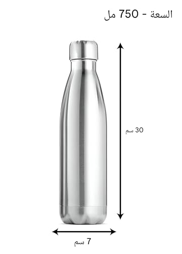 Generic - زجاجة ستانلس ستيل - حافظ على مشروباتك ساخنة او باردة مع زجاجة مياه دائرية سعة 750 مل مثالية للاستخدام اليومي في المنزل او اثناء التنقل، لون فضي انيق (قطعتين)