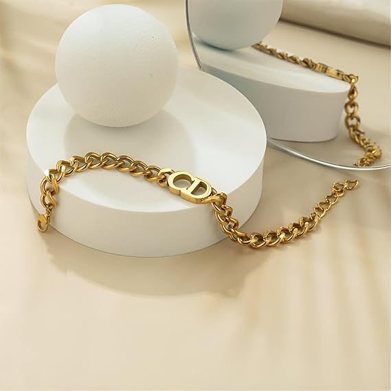 Generic - انسيال من الستانلس ستيل للنساء ,بتصميم شكل CD,مقاوم للصدأ و البهتان ,(قطعة واحده, لون دهبي)-من رنا ستور