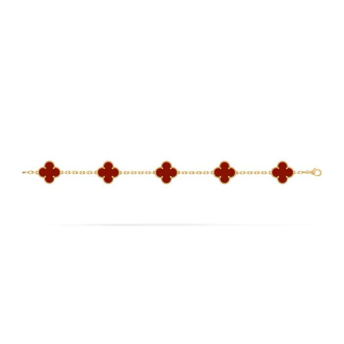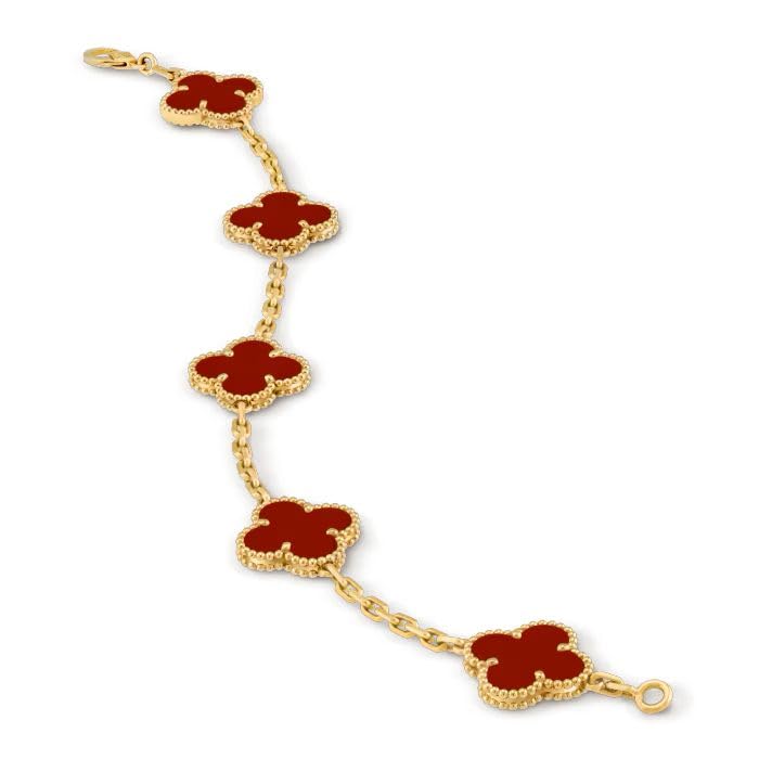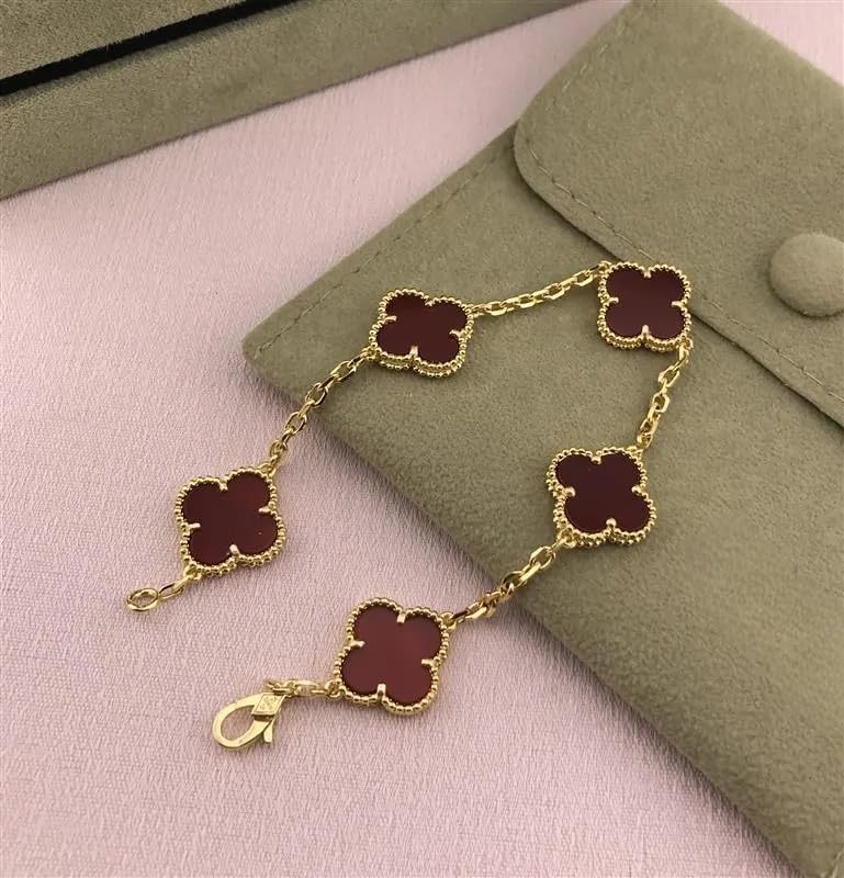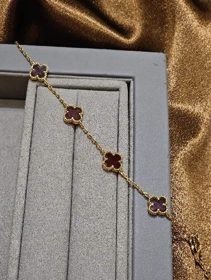 Generic - سوار من الفولاذ المقاوم للصدأ للنساء، سوار الحظ بتصميم حلقات و5 دلايات على شكل ورقة البرسيم رباعية الأوراق، هدية مجوهرات للنساء