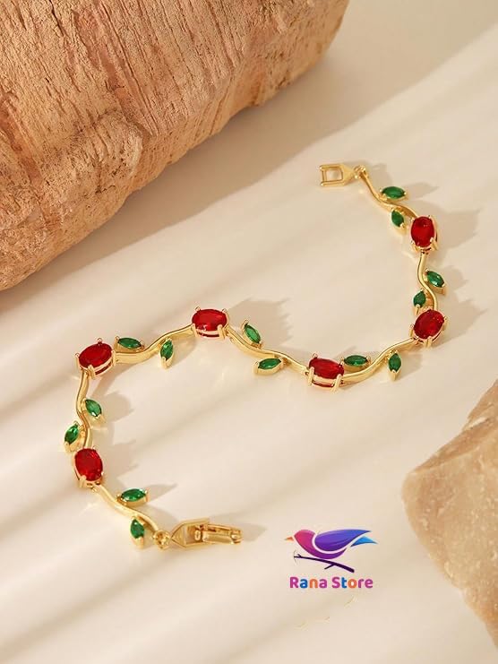 Generic - انسيال من الستانلس ستيل للنساء ,بتصميم زهرات توليب ,مقاوم للصدأ و البهتان , (قطعة واحده بتصميم زهرات توليب), ,لون(دهبي, احمر)-من رنا ستور