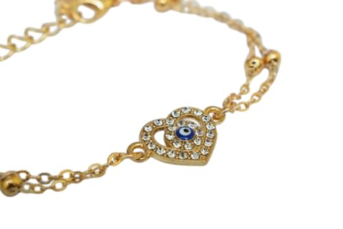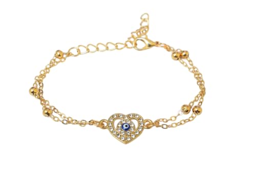 Generic - سوار من الستانلس ستيل مع دلاية على شكل قلب من الداخل بتصميم عين زرقاء للنساء - ذهبي