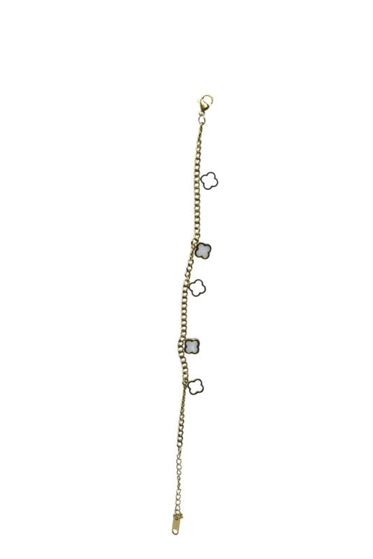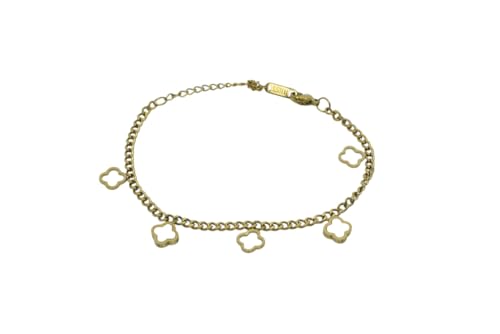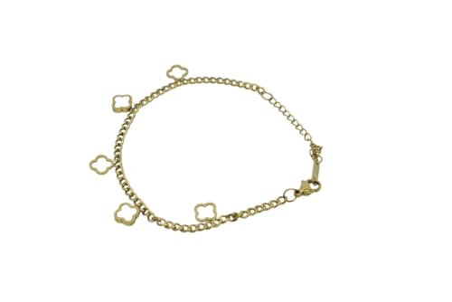 Generic - سوار من الستانلس ستيل بتصميم زهرة البرسيم للبنات - ذهبي وابيض - 867