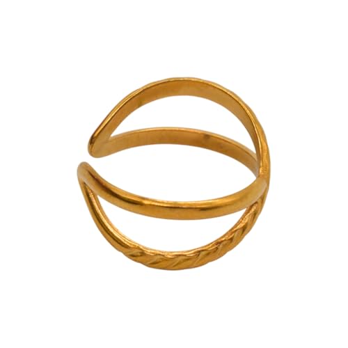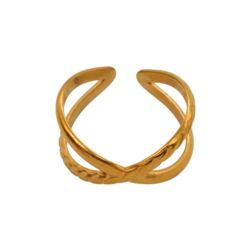 Generic - خاتم للنساء بتصميم متقاطع مضفر من الستانلس ستيل، مقاس واحد - ذهبي