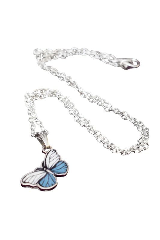 Generic - سلسلة بتصميم فراشة من الفولاذ المقاوم للصدأ للنساء - لون أبيض وأزرق