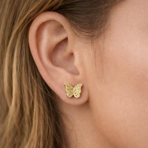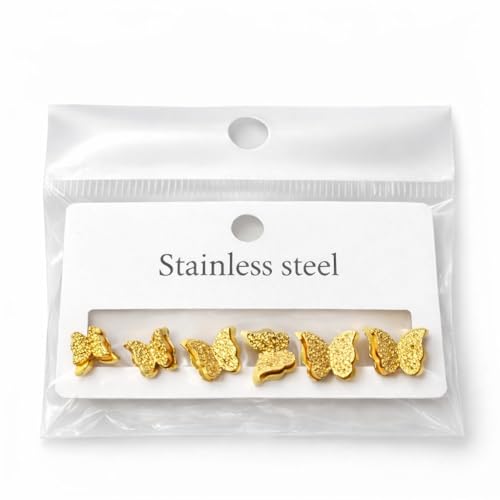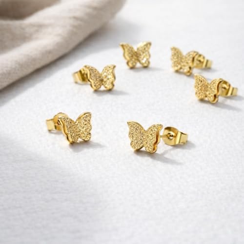 Generic - طقم اقراط على شكل فراشة من الستانلس ستيل للنساء، 3 ازواج صغيرة ومتوسطة وكبيرة، اقراط بتصميم بسيط على شكل فراشة لطيفة بلون ذهبي