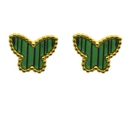 Generic - حلق بريمة من الستانلس ستيل على شكل فراشة مع ترصيع مالاكيت الاخضر للنساء - ذهبي واخضر
