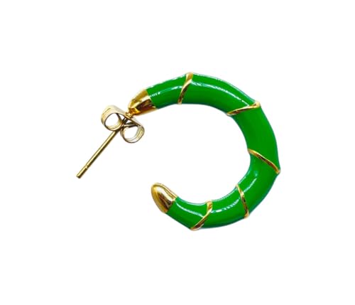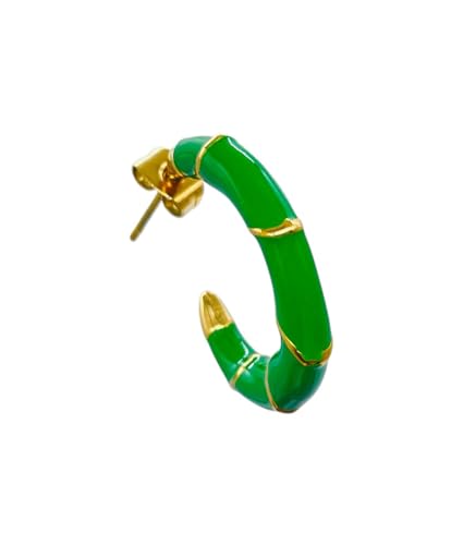 Generic - اقراط حلقية على شكل حرف C من الستانلس ستيل للنساء - اخضر ذهبي