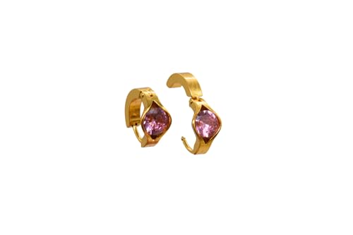 Generic - اقراط من الستانلس ستيل على شكل حرف C مرصعة باحجار كريمة بينك للنساء - ذهبي