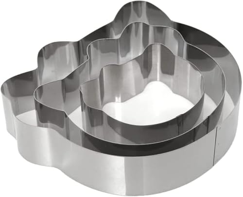 Generic - طقم قوالب كيك من الستانلس ستيل بتصميم شكل قطة 3 مقاسات مختلفة 25 و20 و15 سم - لون فضي