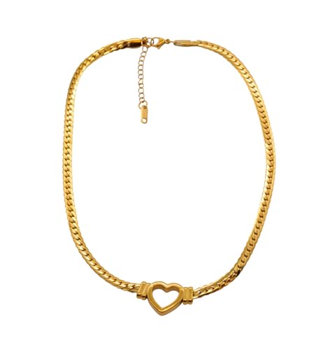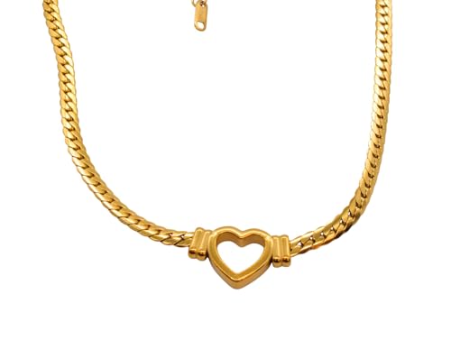 Generic - عقد بقلادة قلب مفرغة من الستانلس ستيل للنساء - ذهبي
