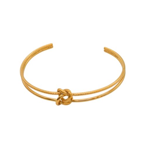 Generic - سوار للنساء من الستانلس ستيل مزين بعقدة مركزية، مقاس واحد - ذهبي
