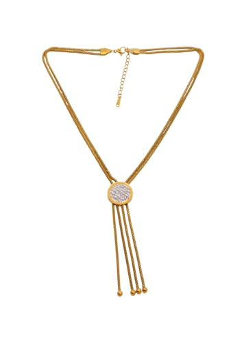 Generic - عقد بقرص مرصع مركزي من الستانلس ستيل للنساء - ذهبي