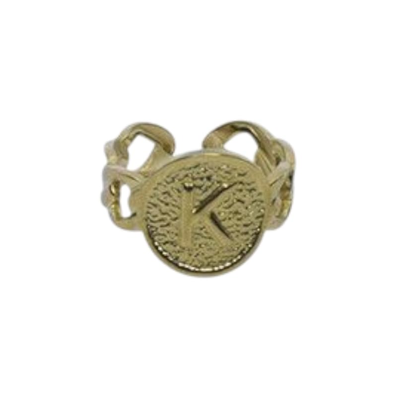 Generic - خاتم مفتوح بحرف K وسلسلة من الفولاذ المقاوم للصدأ للنساء، مقاس حر - ذهبي