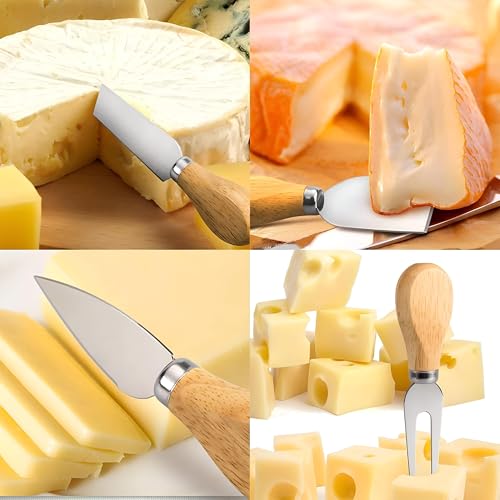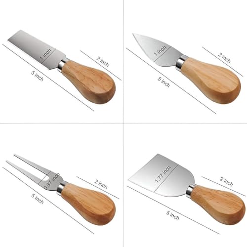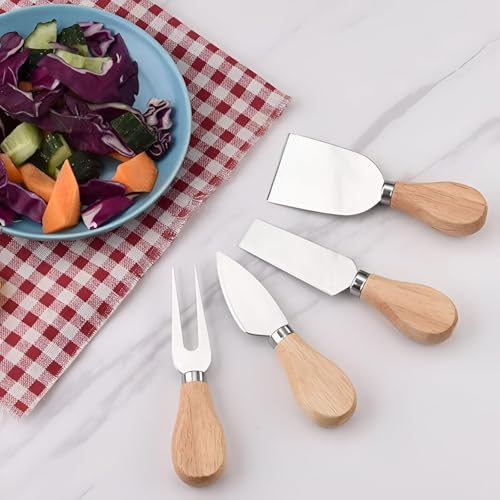 Generic - مجموعة جبن من الستانلس ستيل - 4 سكاكين جبن بمقابض من خشب البلوط، بما في ذلك قطاعات الجبن وأدوات المطبخ لصنع وتقطيع الجبن