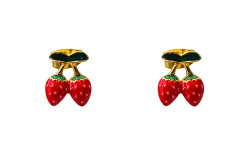 Generic - حلقان على شكل كرز من الفولاذ المقاوم للصدأ للبنات - ذهبي أحمر - 8877