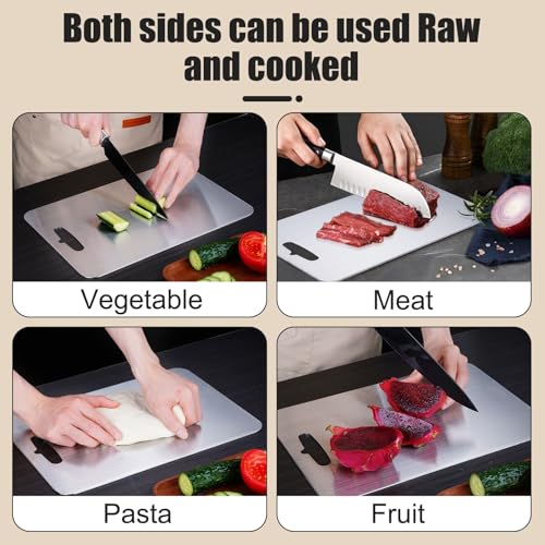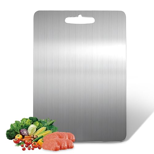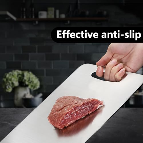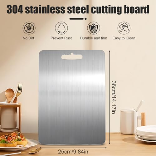hzuisst - لوح تقطيع من الفولاذ المقاوم للصدأ 304، ألواح تقطيع مزدوجة الجوانب آمن غذائيًا للمطبخ واللحوم والفواكه والخضروات، آمن للاستخدام في غسالة الأطباق (36 × 25 سم)