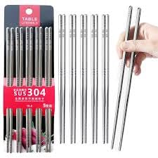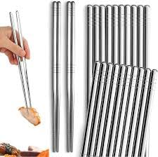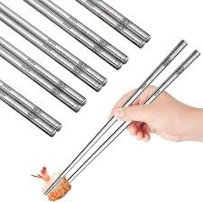 Generic - مجموعة عيدان تناول الطعام استانليس ستيل (5قطع) بتصميم مفرغ مقاوم للانزلاق ومضاد للحرارة – خفيفة وطويلة وقابلة لإعادة الاستخدام للمطبخ والعشاء