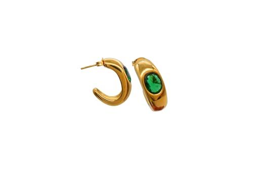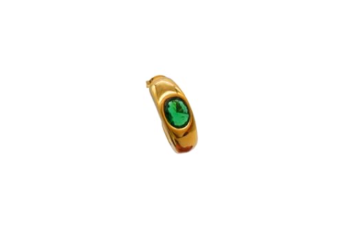 Generic - حلق عريض من الستانلس ستيل على شكل حرف C مع احجار كريمة خضراء للنساء - ذهبي
