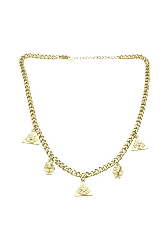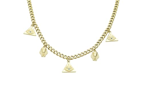 Generic - عقد بسلسلة مكتنزة من الستانلس ستيل مع دلايات مصرية وعين للنساء - ذهبي
