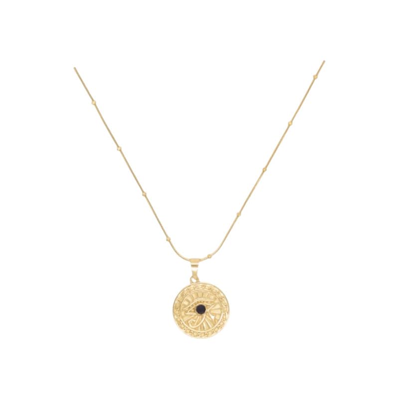 Generic - قلادة بدلاية دائرية من الستانلس ستيل بتصميم عين الحسد للنساء - ذهبي