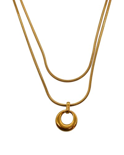Generic - عقد بدلاية دائرية مزدوجة الطبقات من الستانلس ستيل للنساء - ذهبي FA578