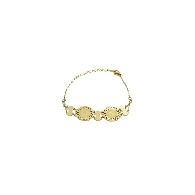 Generic - سوار كلاسيكي من الستانلس ستيل بتصميم عملات معدنية للبنات - ذهبي