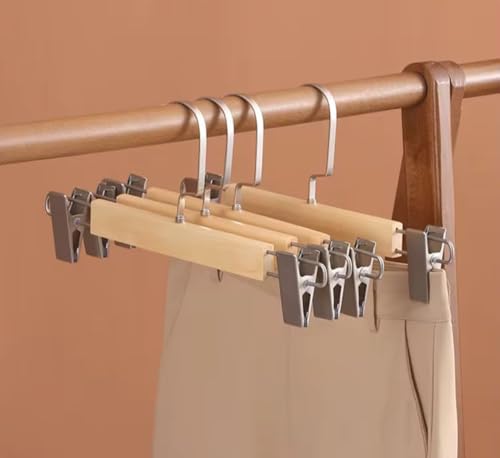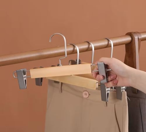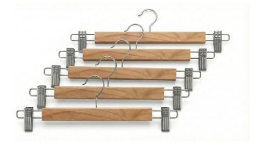 - مجموعة من 5 قطع: علاقات خشبية طبيعية للبنطلونات والتنانير مصممة لتنظيم خزانة ملابسك بشكل أنيق وعملي