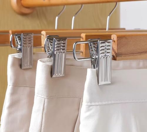 Bedaya - شماعه بنطلون بمشبك ستانلس ستيل - شماعة بنطلون - شماعات خشب مع مشابك معدن بمقبض مطاط،بلمسة نهائية ناعمة للبنطلونات والجيبات والبلوزات ذات الحمالات الرفيعة مع خطاف دوار 360° (2قطعه)