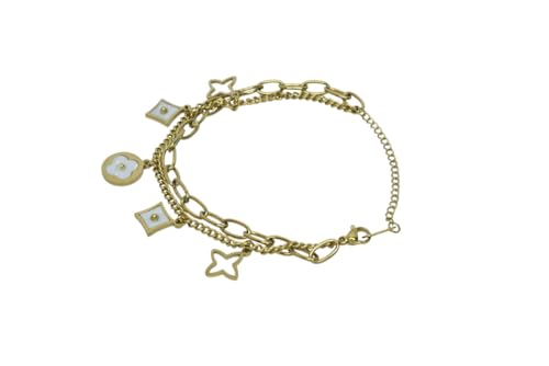 Generic - سوار برسيم من الستانلس ستيل للبنات - ذهبي وابيض