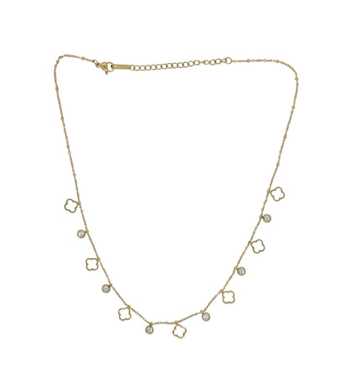 Generic - عقد بدلاية على شكل زهرة البرسيم من الستانلس ستيل للنساء - ذهبي