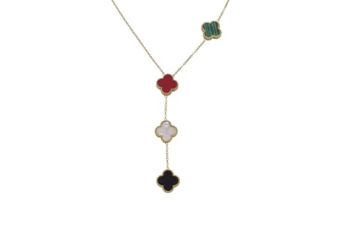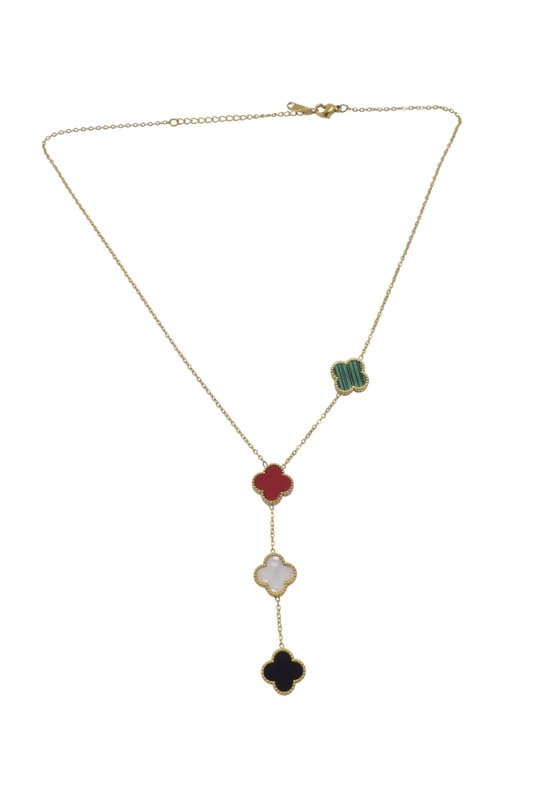 Generic - عقد من الستانلس ستيل بتصميم زهرة البرسيم مع اطار مطرز للنساء - متعدد الالوان