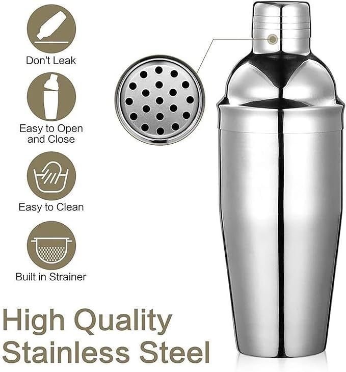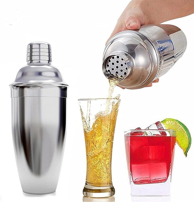 - زجاجة شيكر للكوكتيل من الفولاذ المقاوم للصدأ، أداة مشروبات احترافية للمنزل والبار (فولاذ مقاوم للصدأ) (550 ملليلترًا).