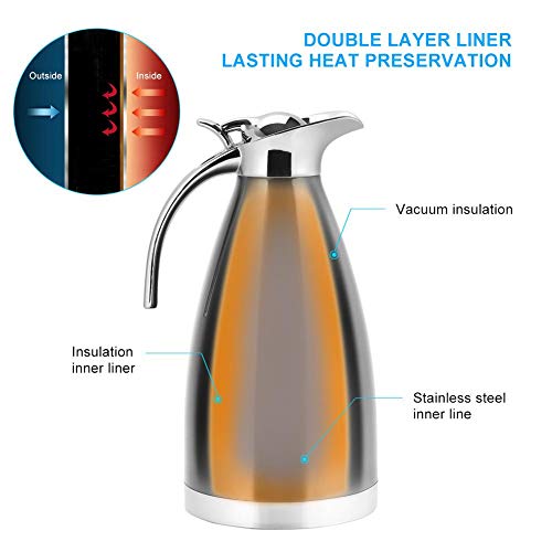 - 【مادة ستانلس ستيل عالية الجودة】: مصنوعة من الستانلس ستيل عالي الجودة، متينة ومقاومة للصدأ وسهلة التنظيف، الستانلس ستيل السميك قوي ومتين للاستخدام طويل الأمد. سعة كبيرة 2 لتر يمكن أن تلبي احتياجات الاستخدام اليومي. استمتع بالقهوة العطرية في أي وقت.